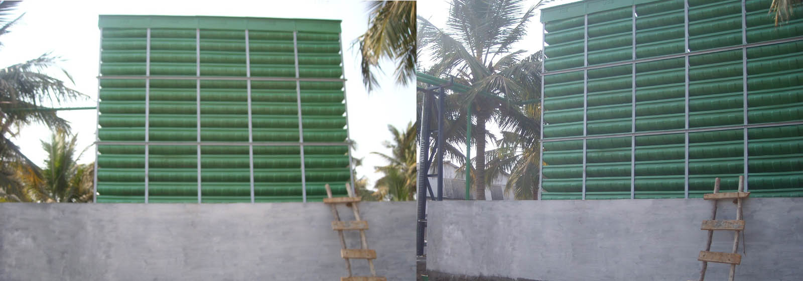 • Being round, the air flow through the towers is more evenly distributed. Structural members do not interrupt air intake and therefore they have been proven to be thermodynamically the most efficient design in the field. This translated directly into reducing running costs. The towers offers PVC fills and eliminators in a design that maximizes economy and efficiency. The counter flow design facilitates low pump heads. The water is distributed inside the towers over the fill area through the self rotating sprinkler so as to give an even distribution over the complete fill area.